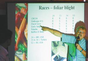 11月12日,在海南农业科学院,应邀前来的美国新墨西哥州立大学教授Paul W. Bosland就辣椒抗病育种做报告。 Paul W. Bosland博士是国际公认最著名的辣椒遗传育种专家之一。 本报记者 李英挺 摄