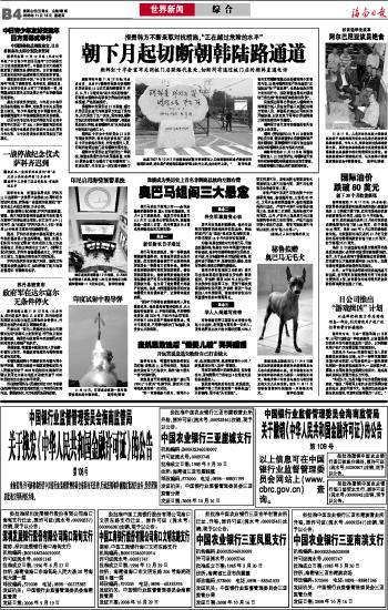 海南日报 世界新闻 012 2008-11-131 2008年11月13日 星期四