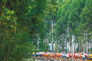 | 13日,参赛车手骑行在文昌境内。 |