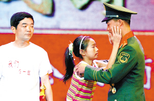 晚会策划人员把杨露的心愿编进音乐剧《叔叔的脸》。节目结束前,杨露应邀上台,见到了将她从废墟中救出的消防官兵之一——“全国抗震救灾模范”暨个人一等功获得者郑阳武,终于摸到了那张坚毅的脸。