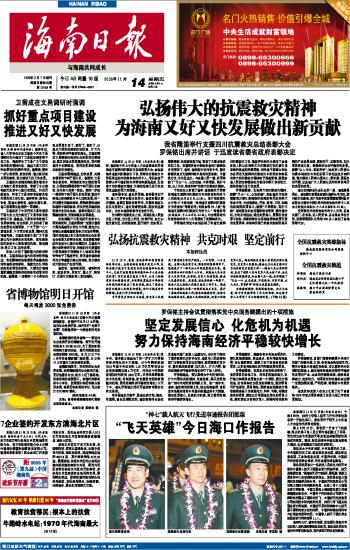 海南日报 头版 001 2008-11-141 2008年11月14日 星期五