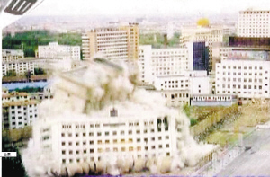 2005年5月17日凌晨,一声闷响,刚建成四年的呼市公安局11层指挥大楼被炸掉了,目的是给“西北第一高楼”腾地方。这次定向爆破也被称作“西北第一爆”。