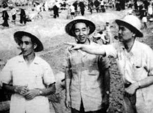 | 1958年,原广东省领导亲临松涛水库施工现场检查工作。