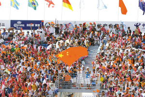 | 11月16日下午,世界沙滩排球巡回赛三亚公开赛举行女子决赛,图为热情的观众。 本报记者 程范淦 摄 |