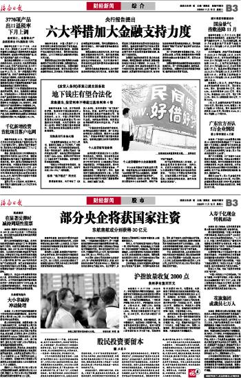 海南日报 财经新闻 011 2008-11-181 2008年11月18日 星期二