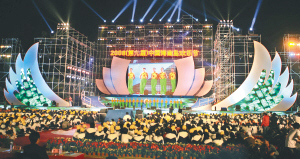 | 11月18日晚,第九届海南岛欢乐节“超越梦想”太空魔幻晚会暨颁奖授旗典礼在文昌白金海岸举行。 本报记者 王凯 摄 |