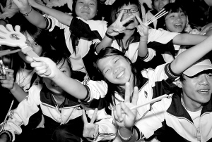 | 十一月十八日晚,在欢乐节闭幕式上欢乐的学生。 本报记者 王凯 摄 |