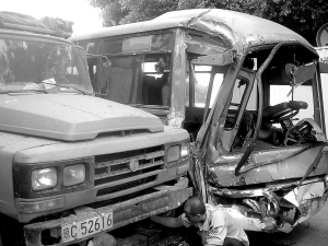 | 公交车、卡车“伤”得都不轻。本报记者林伟 摄 |
