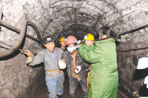 | 11月18日,被困矿工在救援人员的帮助下走出矿井。 新华社记者 赵鹏 摄 |