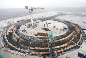 | 在建的方家山核电工程核岛区(11月1日摄)。位于浙江海盐的方家山核电工程是中国首座核电站———秦山核电站的扩建工程,规划建设两台百万千瓦级压水堆核电机组。新华社发 |