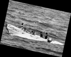 | 索马里海盗通常携带武器乘快艇出击。 |