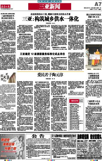 海南日报 三亚新闻 007 2008-11-201 2008年11月20日 星期四