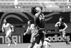 11月19日,在智利中部城市奇廉举行的20岁以下女足世青赛B组比赛中,中国队与小组赛中的第一个对手阿根廷队以0:0战平。图为中国队球员古雅沙为错失进球良机而懊恼。 新华社发 世界青年女足锦标赛开赛 中国队首场 战平阿根廷