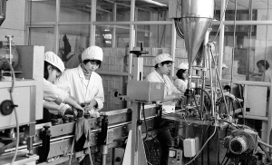 | 图为1992年的海口力神咖啡厂生产车间。 姜恩宇 摄 |