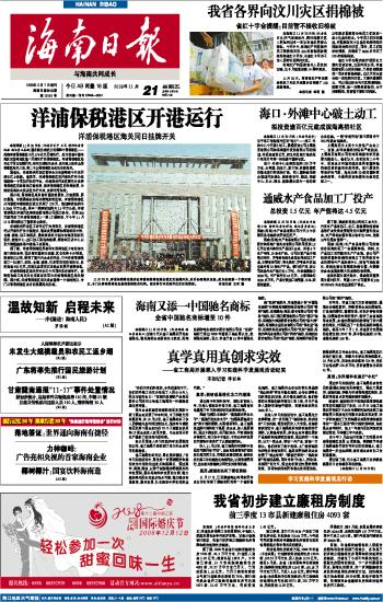 海南日报 头版 001 2008-11-211 2008年11月21日 星期五