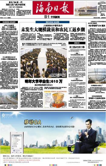 海南日报 中国新闻 009 2008-11-211 2008年11月21日 星期五