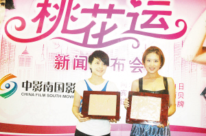 本报海口11月21日讯 (记者戎海 通讯员陈渊)今天下午,2006年超女选手厉娜和陈西贝现身海口中影南国影城。她们此次是以今年首部贺岁电影《桃花运》的主创身份,来海口作宣传。
