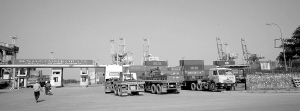 11月11日,当海南日报的3名记者站在越南海防港时,他们也试图透过眼前的桥吊、门机、集装箱看到洋浦。结果是失望的。但是,他们看到了这里与洋浦港一样的情形,集装箱正排满了码头。