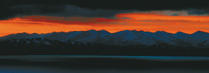朝霞染红了纳木那尼峰,圣湖的深蓝色水面也开始泛起金光。天更亮了,红光晕染得越来越大,连绵雪山衬映在猩红的天幕下,恍如天地间最灿烂的舞台布景。昨天黄昏时的纳木那尼,刀刻似的线条一道道划过雪峰,像木刻画,孤清冷漠,寒气逼人 。而此时,云蒸霞蔚的雪山变得气势磅礴,百里之遥的冈仁波齐也突然冲破厚茧一样的云层,显露雪白真身,播洒圣洁的光辉。