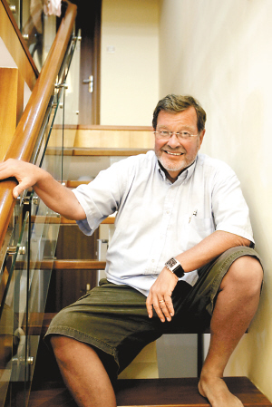 三亚凤凰路的一个小区,最终成为他们的选择,小区对面有片树林,夫妻俩觉得,傍晚时分对着这片树林,有种“相看两不厌”的意味。斯凯格的这套房是跃层的设计,客厅的墙壁上,挂着两幅国画,一为荷花,一为花鸟,斯凯格说,这是中国朋友访问瑞典时送的,他喜欢这些画,就从他收藏的上千件中国物品中挑出这些,带到中国的家来了。斯凯格的妻子和四个儿子,以及三个孙辈,都来过中国。今年10月份,三亚住所装修完毕,万事俱备,他开心地把家人和孙子孙女等都带到三亚,美美地住了一个月。