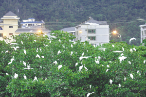 11月23日,成群的白鹭栖息在三亚市月川社区周边。入冬以来,人们发现,在三亚市区过冬的白鹭越来越多,造就了人鸟和谐而居的独特城市景观。 特约记者 孙清 摄