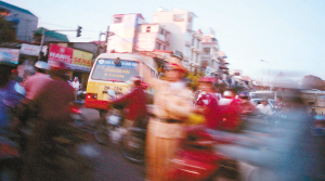 | → 越南是世界上摩托车最集中的国家,河内是世界上交通秩序最让人担心的地区之一。画面上,这个即将被车流淹没的执勤交警,让我们为他捏一把汗。 |