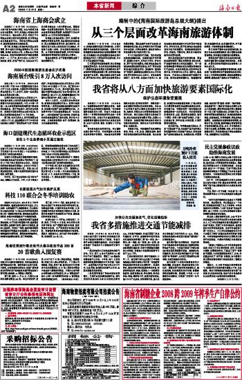 海南日报 本省新闻 综 合 002 2008-11-241 2008年11月24日 星期一