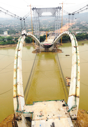 南宁大桥主桥钢箱拱合龙