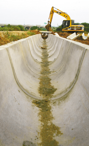11月25日,在海口市秀英区石山镇美鳌村,新建设直通田洋的部分U型渠槽已完工,施工机械在进行土方回填。 国家积极扩大内需,大规模增加基础建设投资。中央已增加我省今年第四季度水利投资3.6亿多元。 本报记者 李英挺 摄