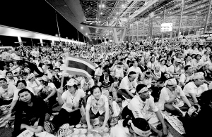 | 11月25日,泰国反政府的人民民主联盟(民盟)示威者在曼谷素万那普国际机场举行大规模集会。 新华社/法新 |