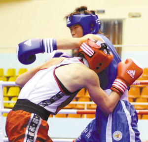 11月26日,中国选手马建霞(右)在2008世界女子拳击锦标赛63公斤级四分之一决赛中,战胜加拿大选手凯瑟琳,晋级半决赛。 新华社发