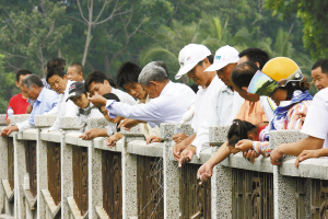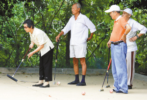 从冰天雪地的北国来到暖阳普照的三亚,休闲健身成了候鸟老年人们的爱好。每天清晨,暖阳初升,在三亚市临春河畔,人们总会看到一群离、退休老人在打门球。既增强了体质,也达到了休闲的目的。 但是在三亚河上的月川小桥上,却时常能看到不少喜欢垂钓的老人。他们几乎整天站在小桥的人行道上,朝河里抛线钓鱼,虽自得其乐,但却影响了过往行人的通行。 老年朋友们,在给您的生活增添情趣的时候,请别忘了健身亦应有“道”。 特约记者 孙清 摄