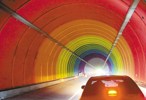 11月25日,一辆汽车从二广高速公路洛阳段上台隧道内驶过。 11月26日,国家主干线二连浩特至广州高速公路河南大安至寄料段、寄料至分水岭段、分水岭至南阳段等三条高速公路建成通车,二连浩特至广州高速公路河南段至此全线贯通。二广高速公路起点在内蒙古自治区二连浩特,途经内蒙古、山西、河南、湖北、湖南、广东6省(区)20多个地市,全长2685公里。目前,大部分路段尚在建设中。 新华社发