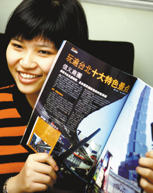 11月26日,一位女孩在介绍《畅游台湾》杂志。 近日,《畅游台湾》杂志在上海面世。该杂志深入介绍了台湾的自然风光、历史人文、时尚消费、生活模式等。《畅游台湾》杂志由国台办主办,台湾旅奇国际有限公司经营、发行。 新华社记者 张明 摄