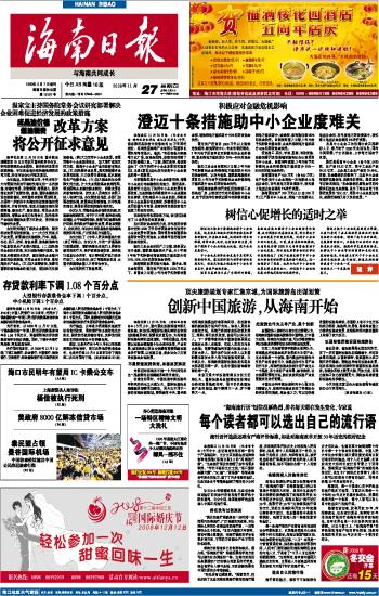 海南日报报业集团旗下媒体: 海南日报 | 南国都市报 | 南海网 | 南岛晚报 | 证券导报 加入收藏 | 设为首页