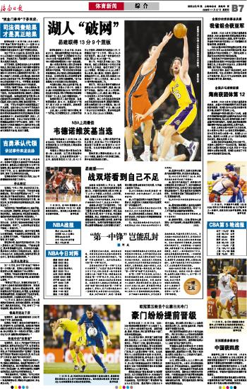 海南日报 体育新闻 综 合 015 2008-11-271 2008年11月27日 星期四