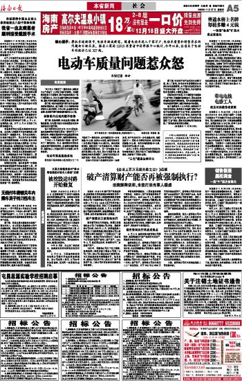 海南日报 本省新闻 社 会 005 2008-11-271 2008年11月27日 星期四