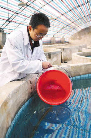 宜昌中华鲟研究所科技人员通过对3尾雌性中华鲟人工授精产下的受精卵进行人工孵化,获得20多万尾中华鲟幼苗。新华社发