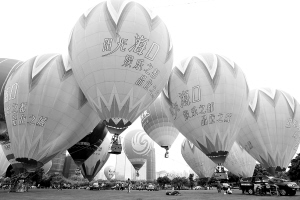 | 4月28日,海口市万绿园近40个色彩鲜艳的热气球飘在高空,许多海口市民争着乘坐气球升空而上,开心的体验着这时尚、新奇的飞行运动。 本报记者 王凯 摄 |