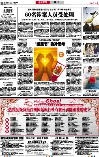 海南日报 中国新闻 综 合 010 2008-11-281 2008年11月28日 星期五