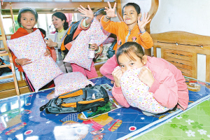 11月28日,临高县特殊教育学校的孩子们高兴地用上了新床、新枕头、新被、新书包等。 在这间海南西部唯一的一所特殊教育学校,生活学习着20多名残障儿童。由于办学条件有限,学生宿舍非常简陋。享有一张牢固、温暖的床,一直是孩子们的期盼。安利公司获悉这些情况后,马上着手筹办“爱心宿舍”,为孩子们送来6张功能齐全的上下铺木床,配上舒适的床垫、温暖舒适的枕头和被子。 本报记者 李英挺 摄