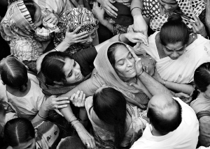 | 11月29日,在印度孟买,一位恐怖袭击事件遇难者的母亲(中)在葬礼上悲恸欲绝。 新华社/法新 |