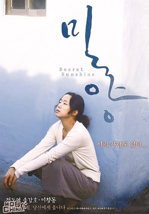 《密阳》意为密集的阳光。丧夫的李申爱来到这个温暖的地方,她死去的丈夫的家乡,是为了寻找温暖吗?这个女人内心一定是孤苦的,充满了寒意,虽然我们看到在丽日蓝天下,她带着儿子,开办了一间钢琴教室“俊”。“俊”是她儿子的名字,不久就由于她过于招摇于买地置业而被绑架,并且毫无意外地死了。《密阳》是彻底的现实主义,这里没有超人般的女律师和前刑警,只有一个普普通通的女人,面对着她根本无法承受的巨大灾难。