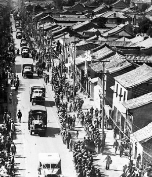 当时隶属六十六军28师的某营长罗再启回忆,1942年一月份,28师开向缅甸。由贵州兴仁出发,经兴义进入云南的罗平、师宗、宜良,到禄丰集中,全师万人乘坐数百辆大卡车,组成庞大车队,由华侨司机驾驶,沿着滇缅公路南下。到四月份方才到达缅甸东北重镇腊戍,行程几千里。