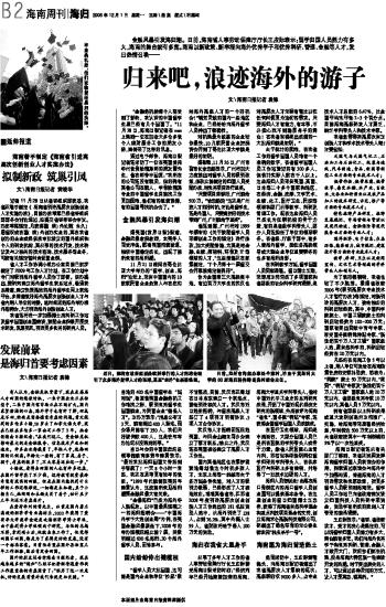 | 海南日报 海南周刊/海归 010 2008-12-011 2008年12月01日 星期一 |