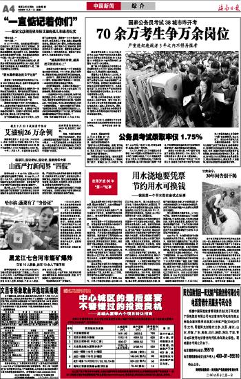 海南日报 中国新闻 004 2008-12-011 2008年12月01日 星期一