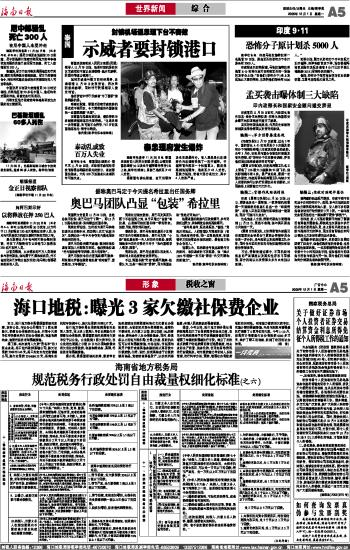 海南日报 世界新闻 005 2008-12-011 2008年12月01日 星期一