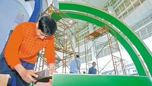 12月6日,海口会展中心,中国(海南)国际热带农产品冬季交易会布展正在紧张进行中。 本报记者 李英挺 摄