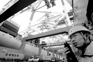 当日,上海洋山深水港三期工程建成仪式在小洋山隆重举行,这标志着洋山深水港北港区主体工程全面建成。三期工程的完成,使洋山深水港北港区集装箱专用泊位增加到16个,岸线全长5.6公里,设计年吞吐能力为930万标准箱。 新华社记者 陈飞 摄