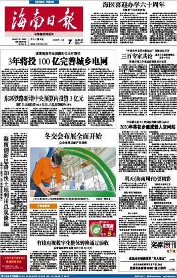 海南日报 头版 001 2008-12-071 2008年12月07日 星期日
